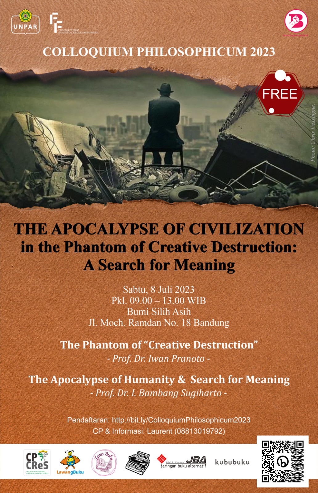 Berkaitan dengan isu tersebut, Fakultas Filsafat Universitas Katolik Parahyangan menggelar seminar setengah hari yang bermaksud merenungkan ulang kiblat peradaban kita selama ini. Adapun perhelatan tersebut adalah Colloquium Philosophicum dengan tema ,“The Apocalypse of Civilization: in the Phantom of Creative Destruction: A Search for Meaning” yang akan diselenggarakan: